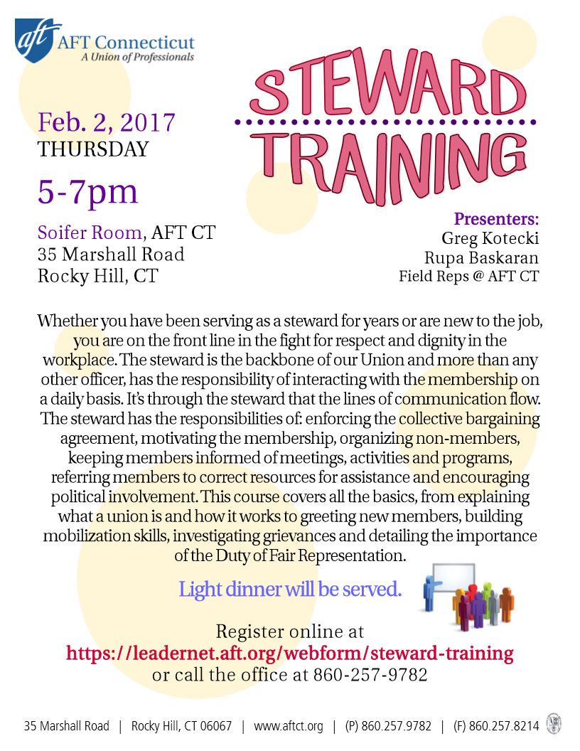Event date: Thursday, February 2, 2017 - 5:00pm to 7:00pmAddress: Soifer Room at AFT CT35 Marshall RdRocky Hill ConnecticutUnited States